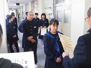 本日、以下の表彰を行いました。今回も、運動部・文化部、文化的活動においてたくさんの活躍が見られました。