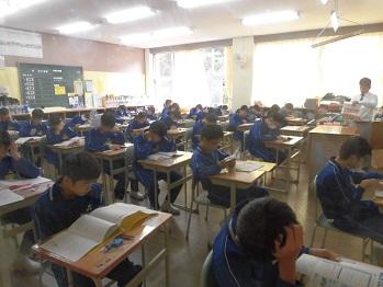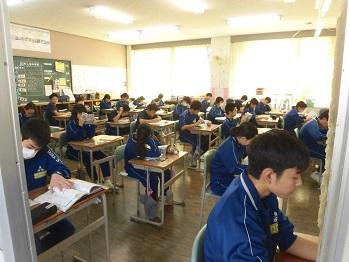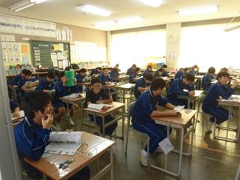 3年生は、今日の学力テストの午後に備え、昼休みは勉強です。こちらも大事な取組の一つですね。