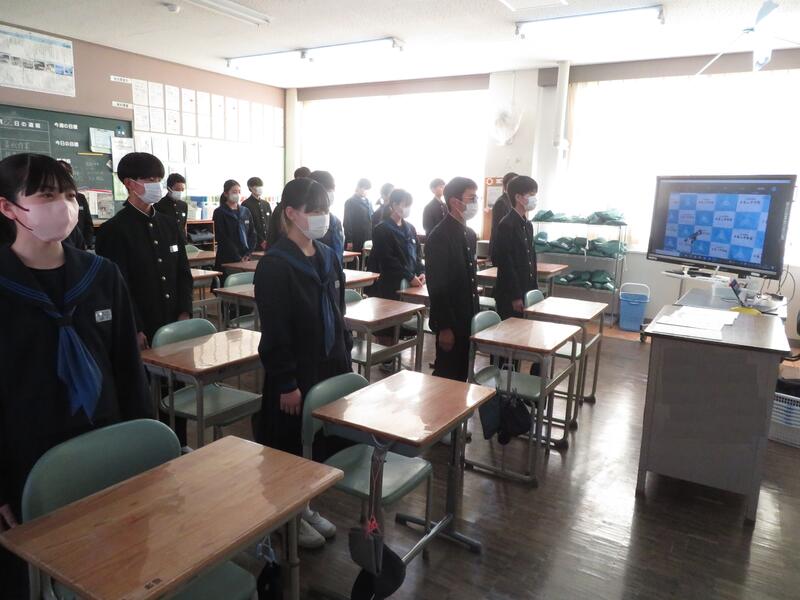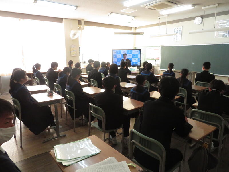 終業式同様に、感染症予防、防寒対策としてオンライン配信で始業式を実施しました。