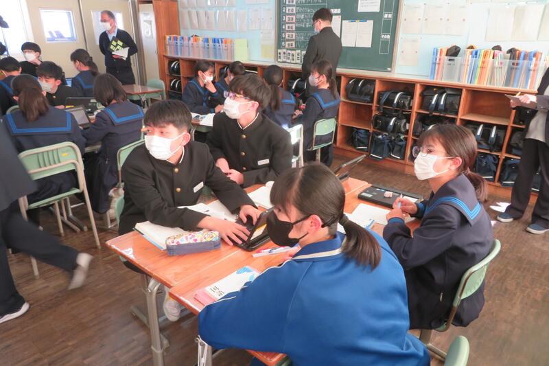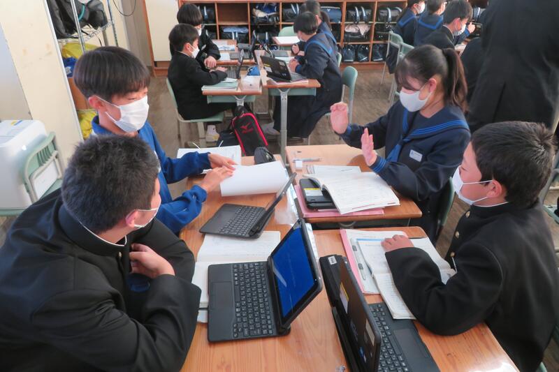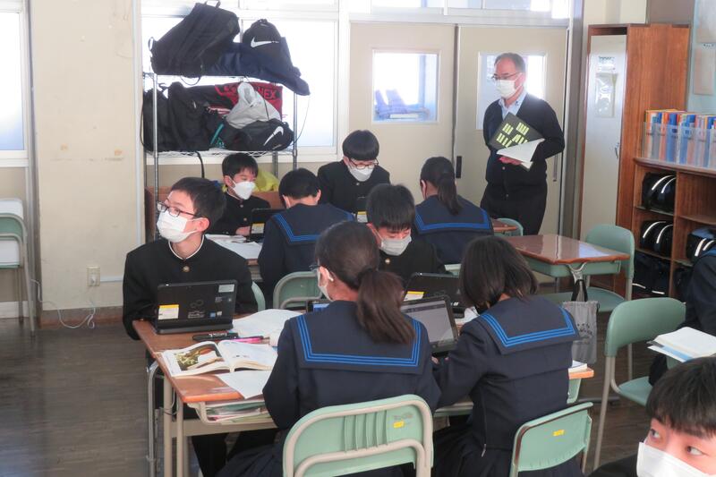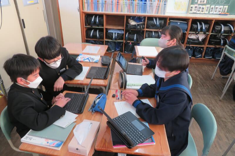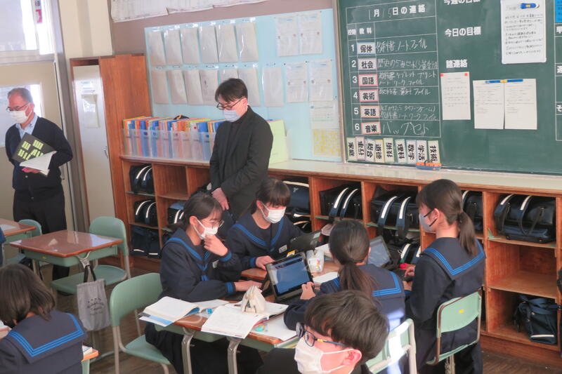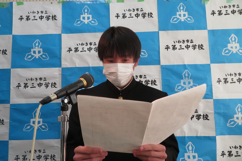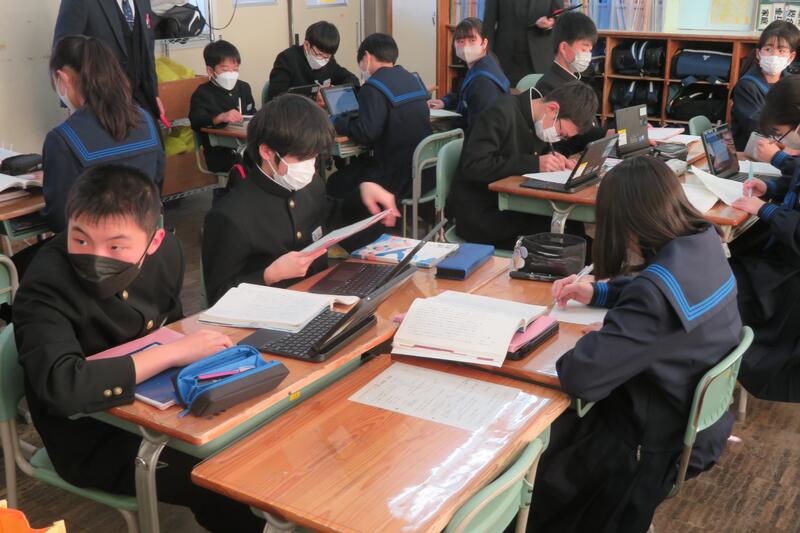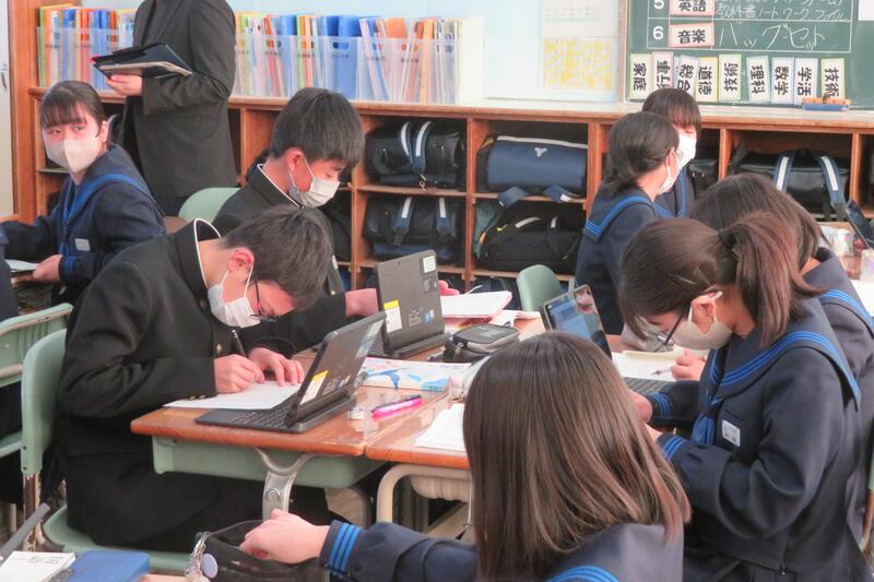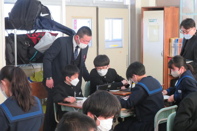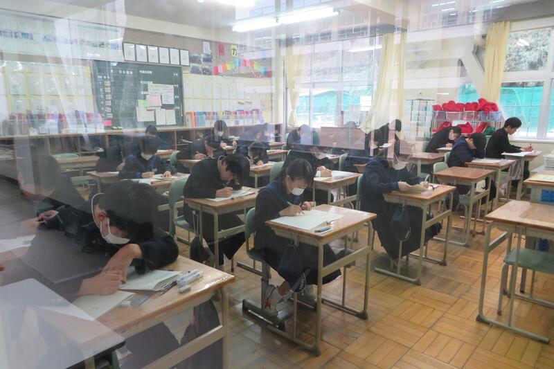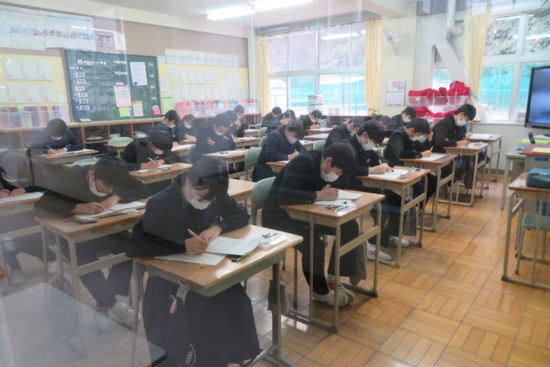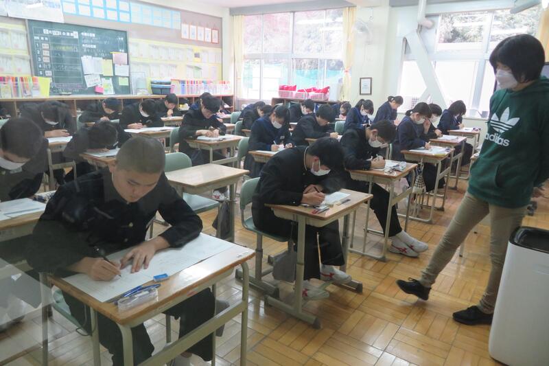 昨日は、3年生の学年末テスト1日目と1・2年生の学力テストが行われ、今日は3年生の学年末テスト2日目(数学、社会、英語)が行われています。