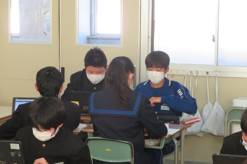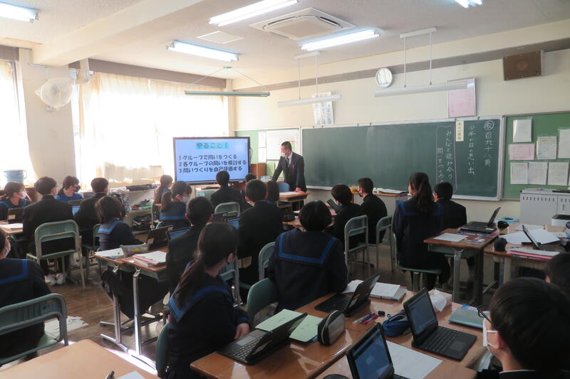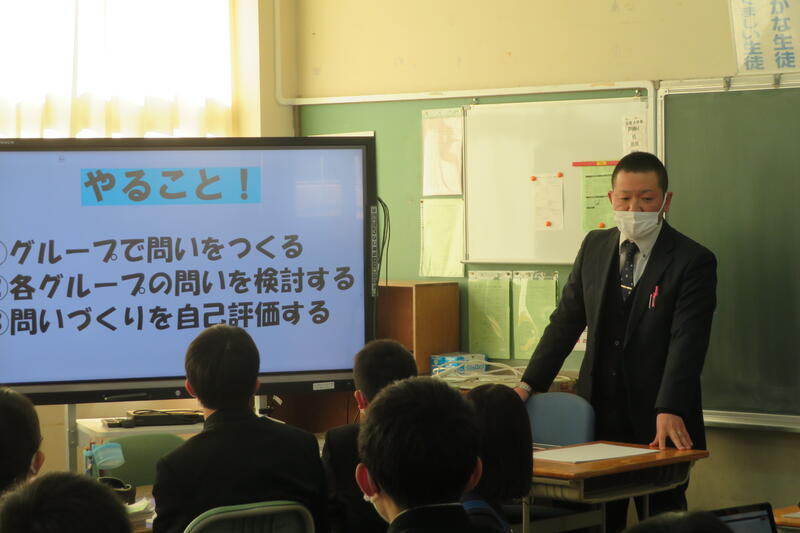 小説を読み解くための問いをグループで話し合いをしながら見つけ、全体で共有するという授業でした。
