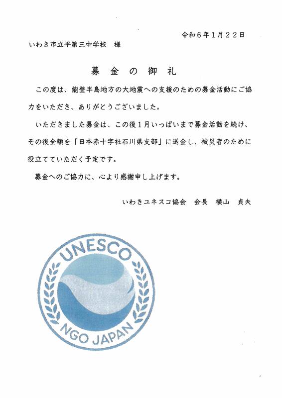 1月22日(月)、その募金を「いわきユネスコ協会」へお預けしました。