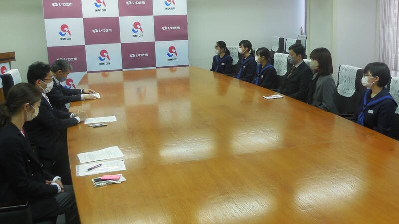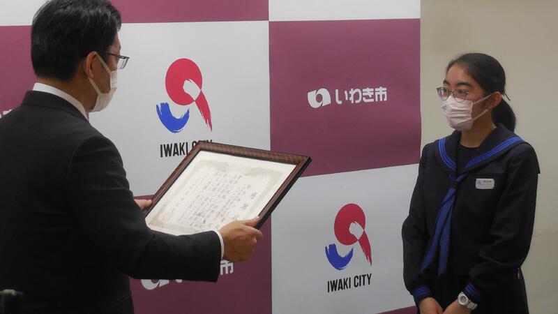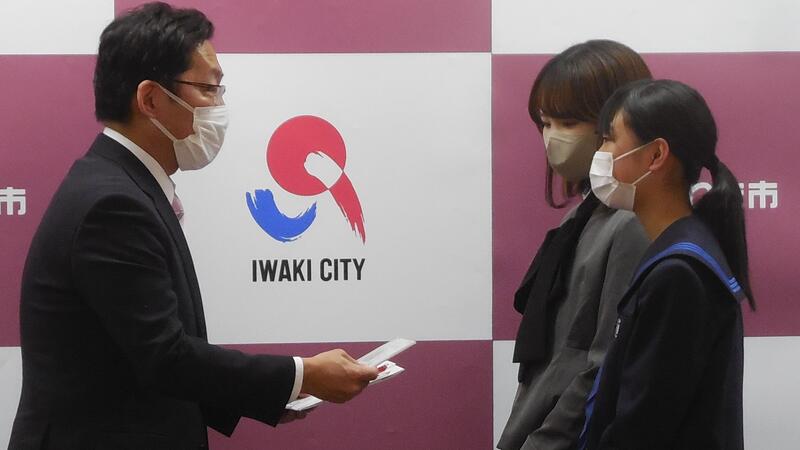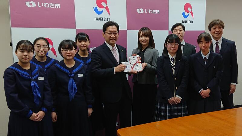 生徒たちが関心を持って取り組んでいる子ども食堂やフードバンク事業などに使ってもらえたら…ということで、やま鳶さんと生徒たちが寄付先に選んだのはいわき市ふるさと振興基金。いわき市の内田市長に寄附金を渡すと同時に、感謝状をいただきました。