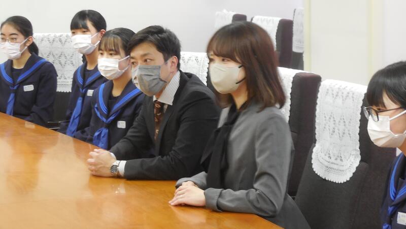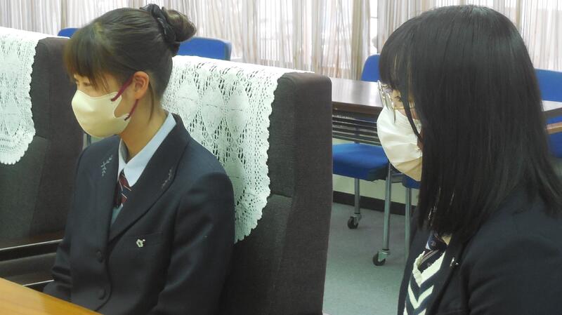 その後は内田市長と懇談です。この貴重な機会に、生徒たちはひとりひとり市長に質問。生徒たちの真剣な眼差しに、内田市長は自らの経験などを交えてとても丁寧に答えてくださいました。