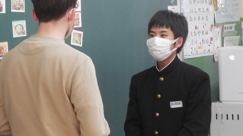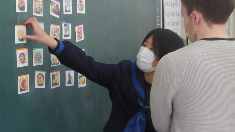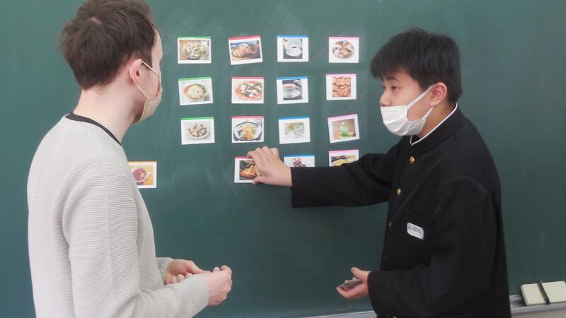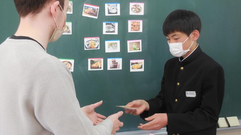 今年度最後のALT来校ということで、ジェイムズ先生が各クラスで授業を行っています。今週は1年生で「レストランでの注文」をシミュレーションしての会話活動を行いました。