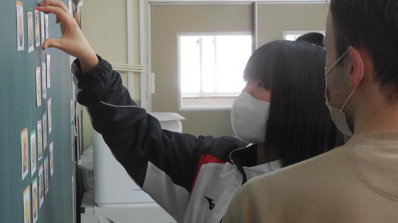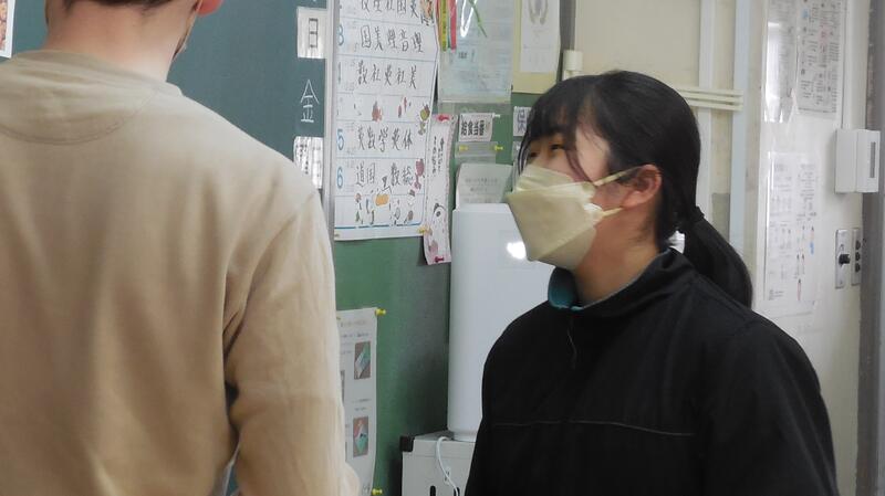 そして始まった本番。まずはお互い自発的に練習を行います。1年生として最後の会話活動ということで、どの生徒も何も見ずにやりとりを行おうと必死です。
