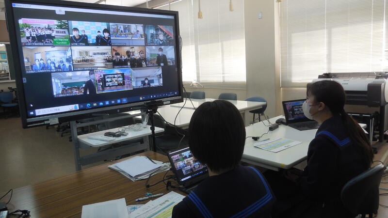午前中の部は和やかな雰囲気の中、参加チームや映像作品の紹介が行われ、1年生の生徒2名が立派に全国に向けて自分たちが取り組んできた活動そして完成させた作品を紹介しました。