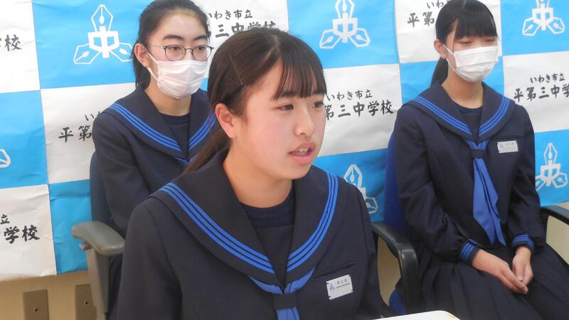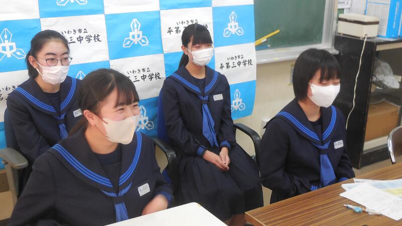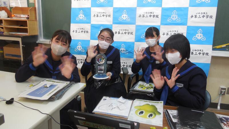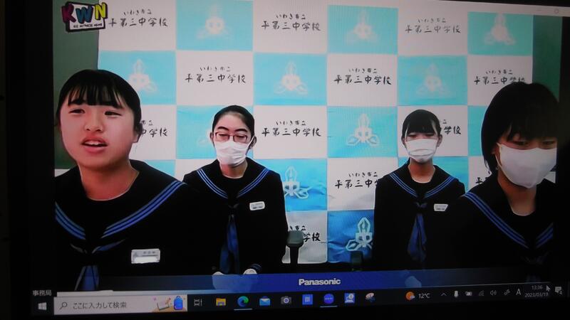 3月5日(日)には「おさかなの日」のイベントでご一緒させていただいた「いわきと創作らぁ麺やま鳶」さん。そもそもお付き合いの始まりは、2年前にやま鳶さんからお声かけをいただいていわきブランドの入浴液クリビオのPR動画を制作したのがきっかけです。その売り上げ金などから、10万円をいわき市に寄附させていただくことになり、いわき市役所で行われた贈呈式に制作に携わった3年生4人と高校1年生になった2人が参加しました。
