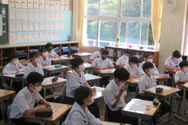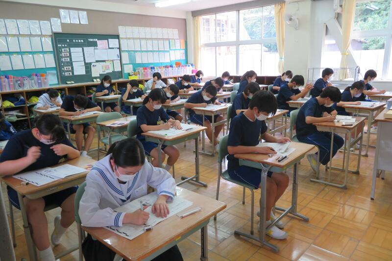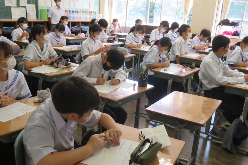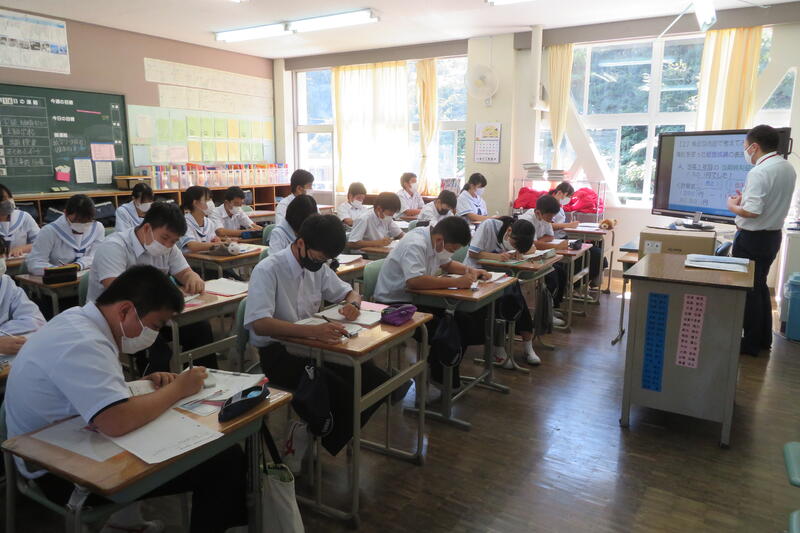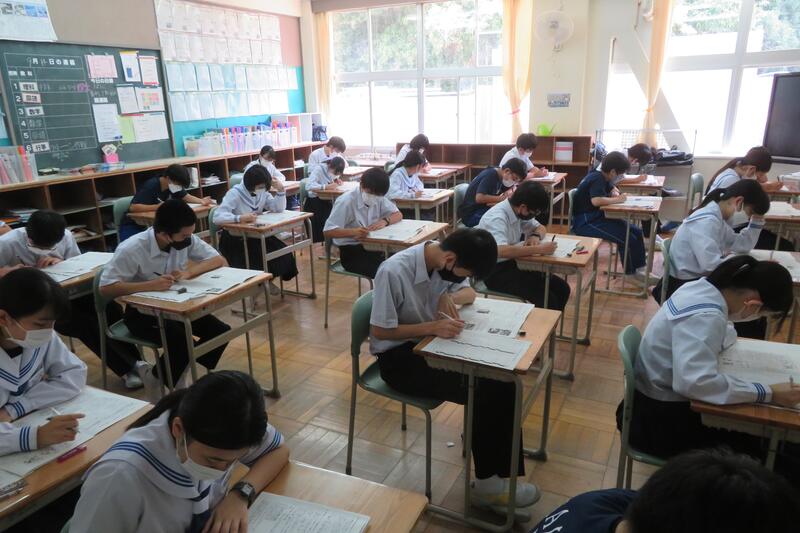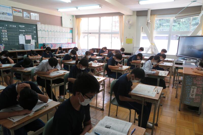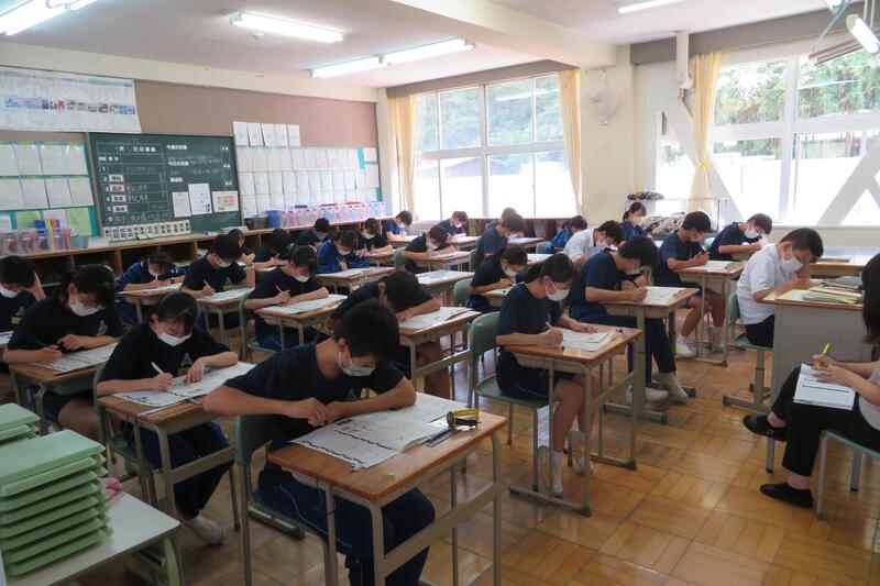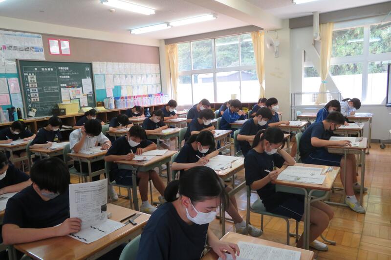 現在4教科目の社会を実施しています。がんばれ三中生!