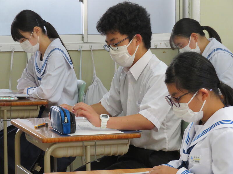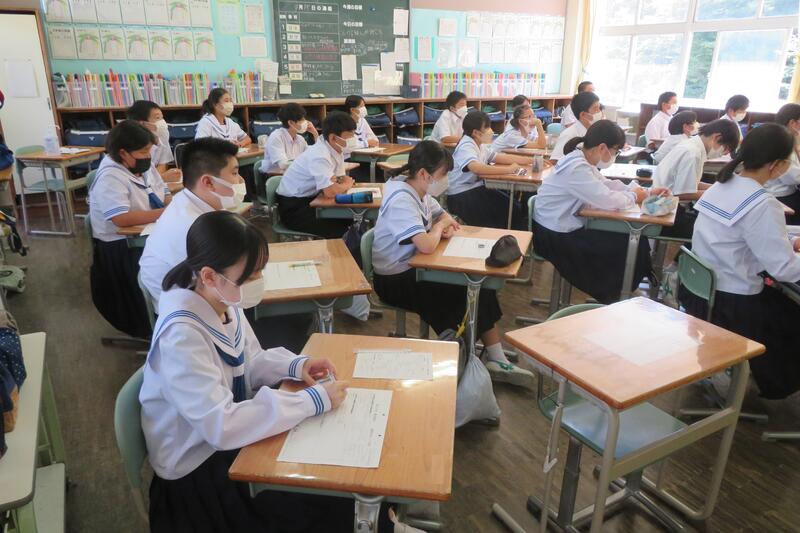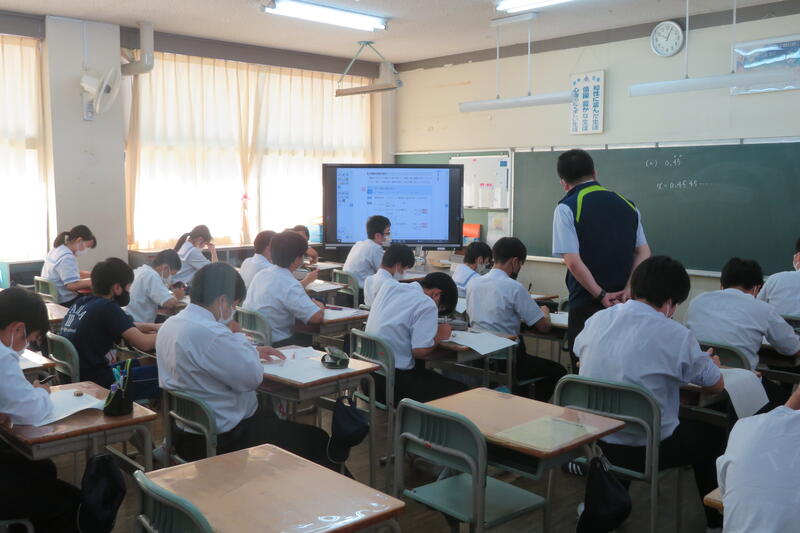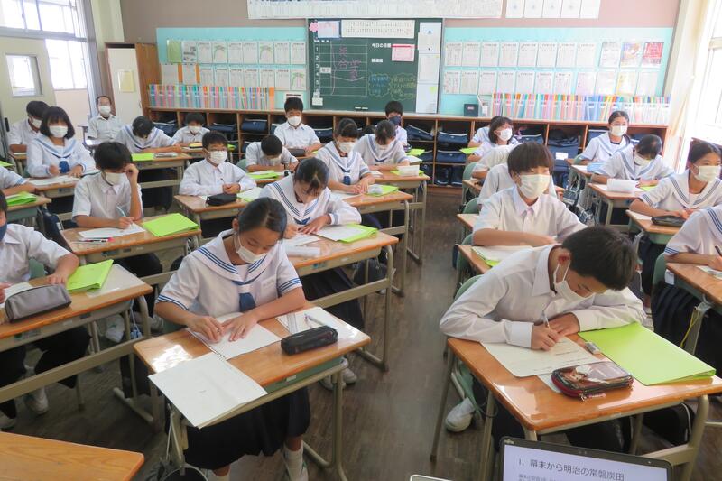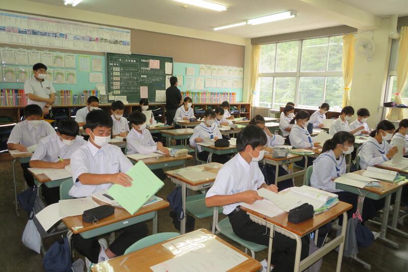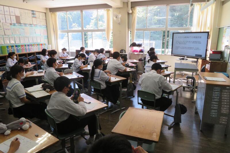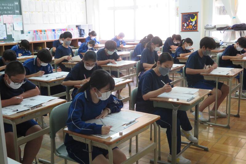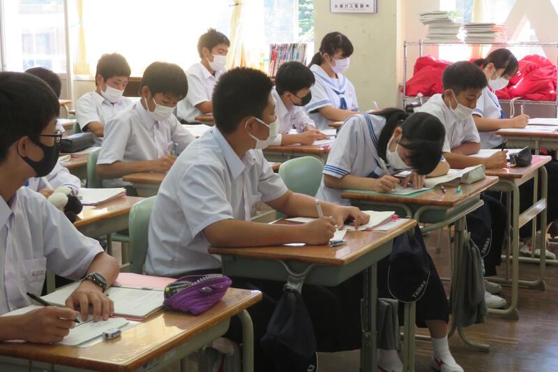 現在4教科目の社会を実施しています。がんばれ三中生!
