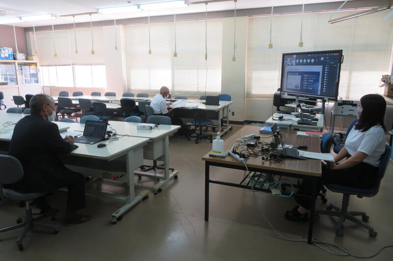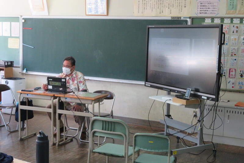 体育館が改装工事中で使用できないため、コンピュータ室から各学級へ配信する形式で実施しました。