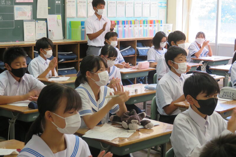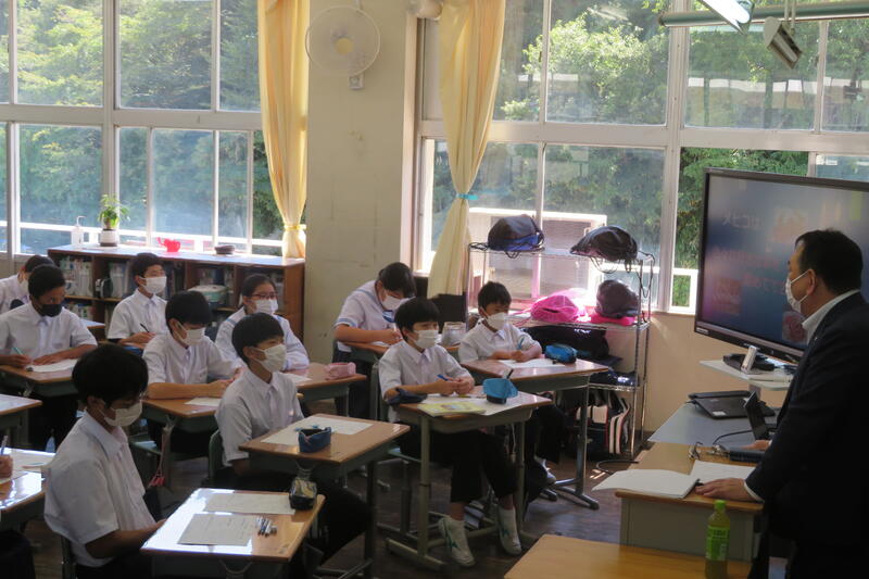 その時々の話題などについて話をしますが、今日取り上げたのは「青春って密」というこの夏話題になった言葉です。自分が学生だった頃のエピソードなどを交えて、中学生にメッセージを送りました。