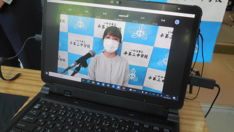 コロナ禍そして体育館改修により、今年度の放送朝会はオンラインで行われています。表現力やコミュニケーション力を向上させるために、ノー原稿でカメラの前に立ちます。今回は2学年の先生が担当しました。