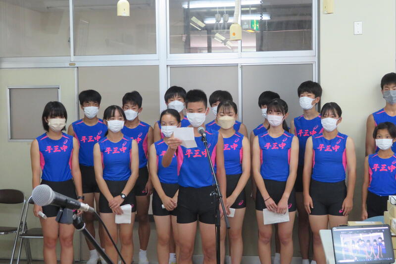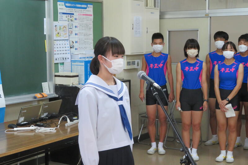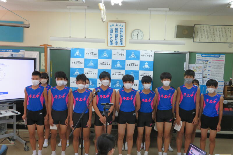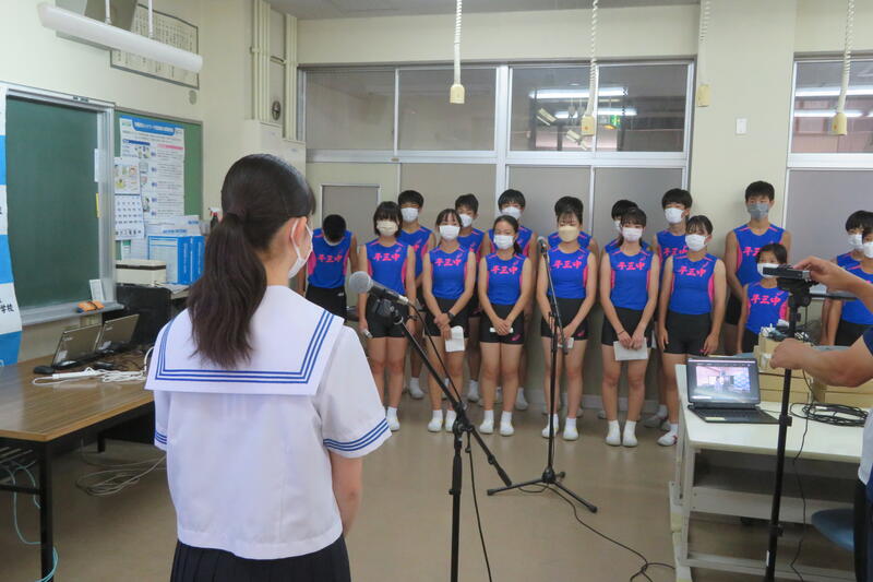 9月8日に予定されている、市中体連駅伝大会に出場する選手の激励会をオンライン配信で実施しました。