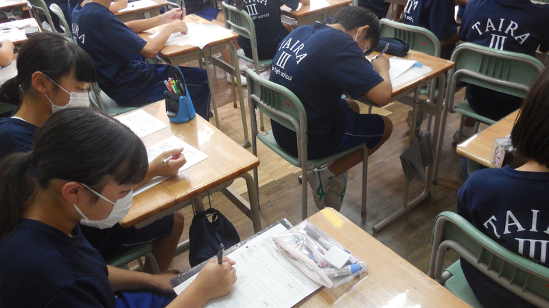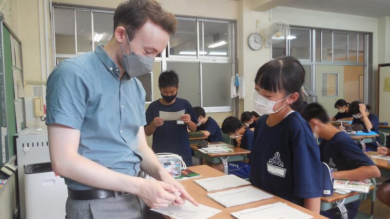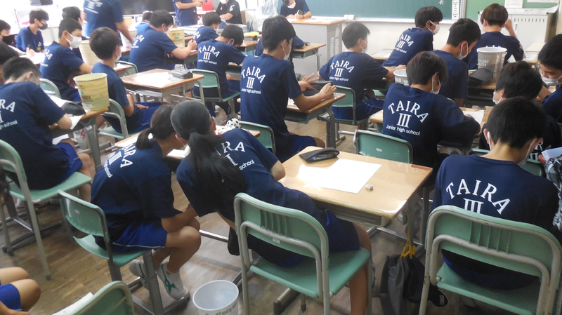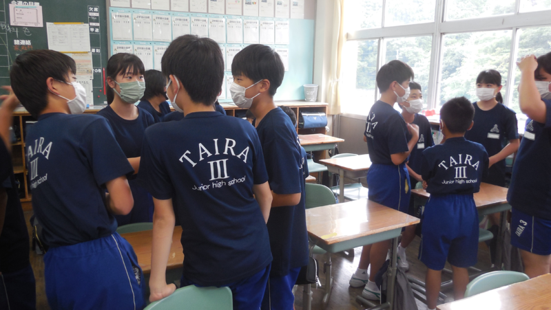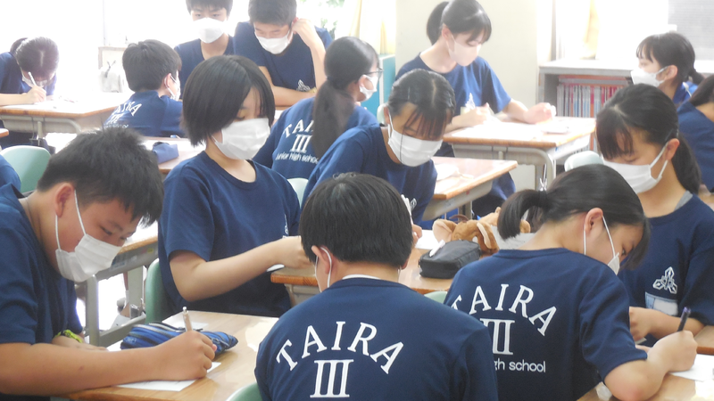 今週と来週はALTの先生が平三中に来て英語の授業をサポートしています(平三中はいずれの学期も最初に訪問が組まれています)。1年生ではちょうど中間テストの試験範囲も配布されたことから、英単語を並べかえて英文を完成させる活動を行いました。
