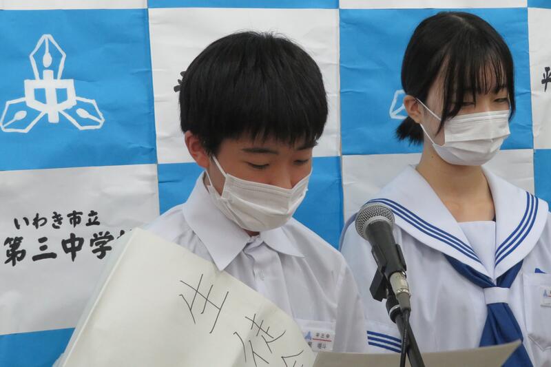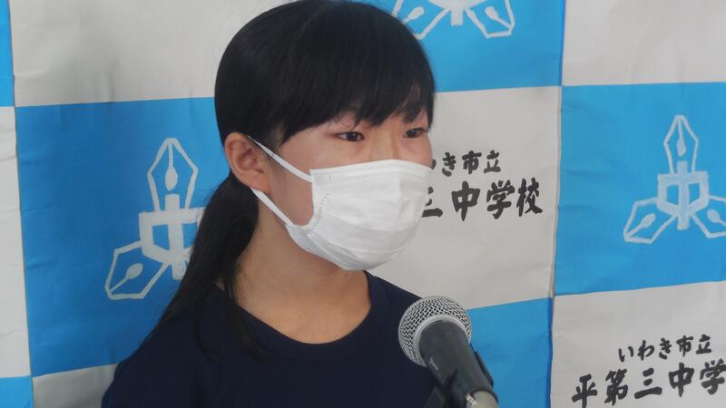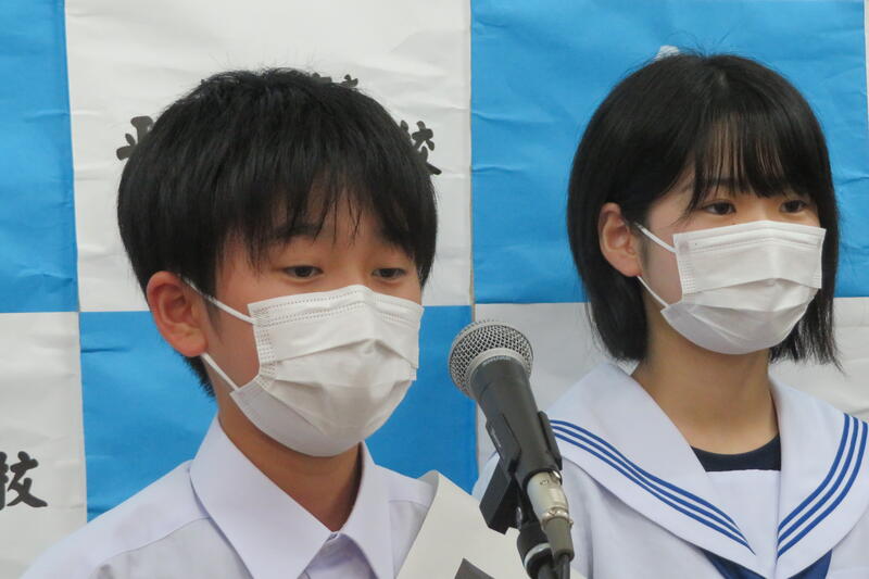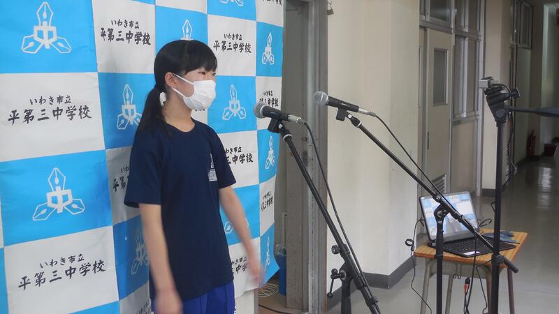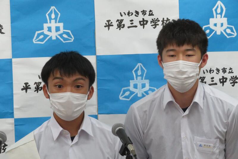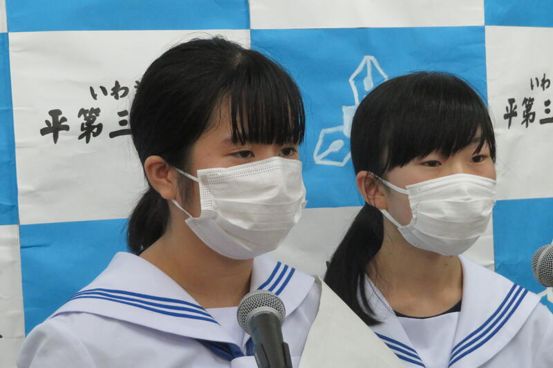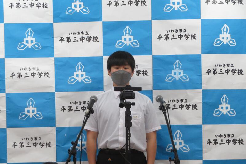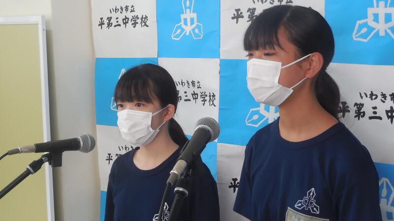 続いて登場したのは2年生の代表生徒です。吹奏楽部員として先月末に東北吹奏楽コンクールに参加した時の様子や活動を通して学んだことなど、貴重な体験について発表しました。