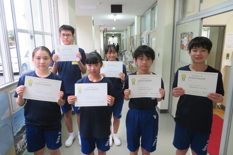 スペリングコンテスト「満点賞」(代表生徒への伝達)