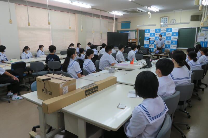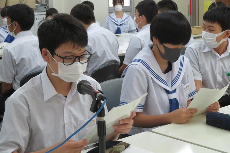 コロナ禍でなかなか集会を開くことができない現状に加え、そもそも集会を行う体育館が改修中ということで、人前で発表したり自分の意見を述べる機会が減ってきています。そこで、ひとりひとりの発表力や表現力を向上させる機会を確保し、みんなで模範となるスピーチやプレゼンテーションを共有するために、今年度は毎週月曜日の放送朝会はオンライン配信で実施しています。もちろんノー原稿。カメラを通してではありますが、それぞれの思いを生徒たちが全校生に伝えました。