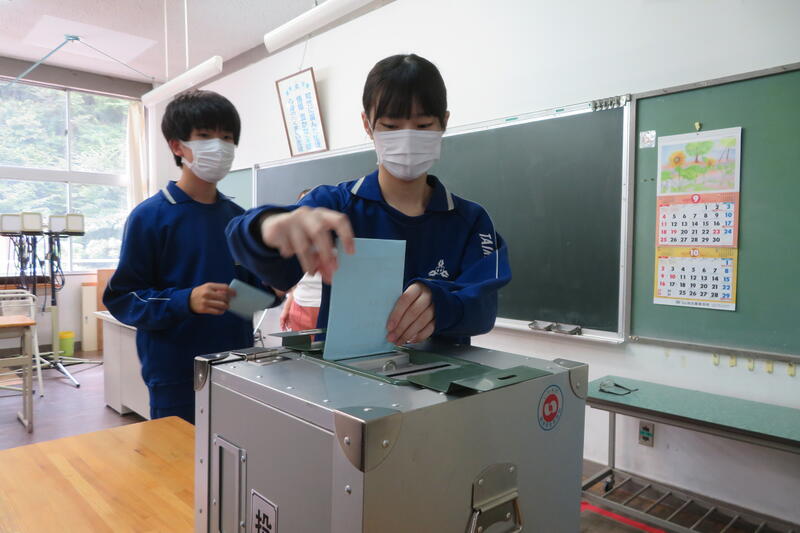 立候補者や応援責任者の演説後に各学年室にて投票を実施しました。