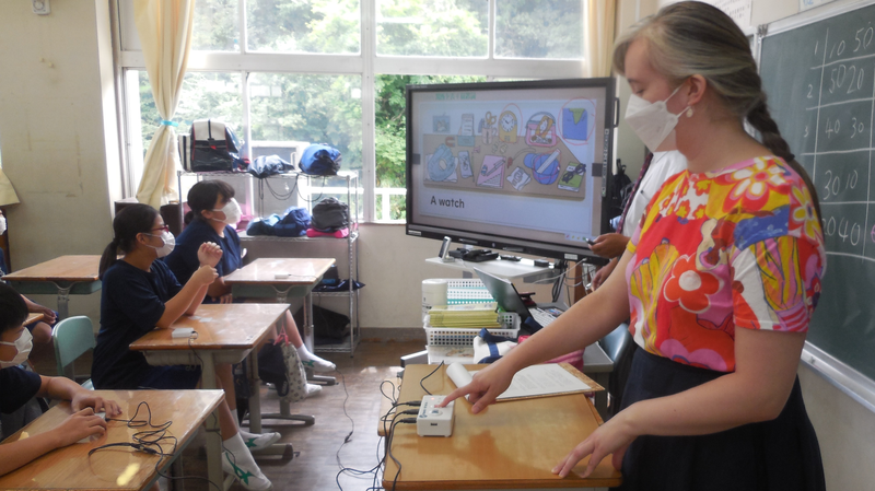 どこにも日本語訳はありませんが、品詞や今までの学習事項を頼りにチャレンジ!疑問詞で始まる文や慣用句を用いた文をジェシカ先生に伝えてミッション終了です。無事に英文を完成させることができました。