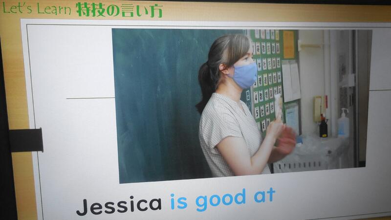もちろん英作文には生徒の考えたことを幅広く反映させることができます。ジェシカ先生が得意なことは?「英語を話すこと」はもちろん、「英語を教えること」「スキーをすること」など、いろいろなアイディアが出てきました。暗記ではなく自分で言いたいことを表現する姿勢が身についているのは素晴らしいですね!