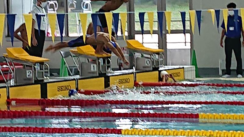 郡山市の開成山プールで行われている県中学校水泳選手権大会。午前中の男子の種目が終了しました。