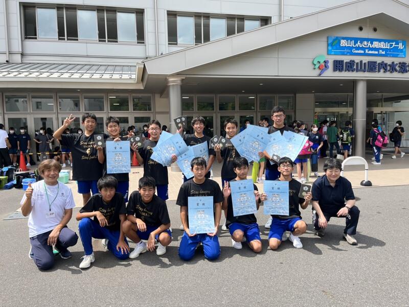 先ほどから郡山市で行われている県中学校水泳選手権大会。男子200Mフリーリレーと200Mメドレーリレーで、平三中チームが第1位でゴール!県大会という大きな舞台で素晴らしい成績を残しました。おめでとう!