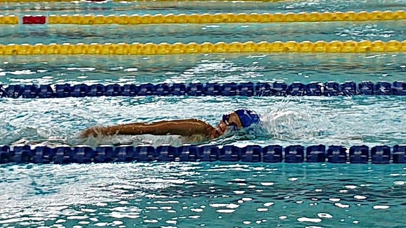 郡山市で行われている県中学校水泳選手権大会。午前中の男子に続き、午後は女子のレースが行われます。女子チームは1・2年生4名の新チームで競技に臨みます。まずは200Mフリーリレー。入賞目指して最後まで全力で泳ぎきりましょう!