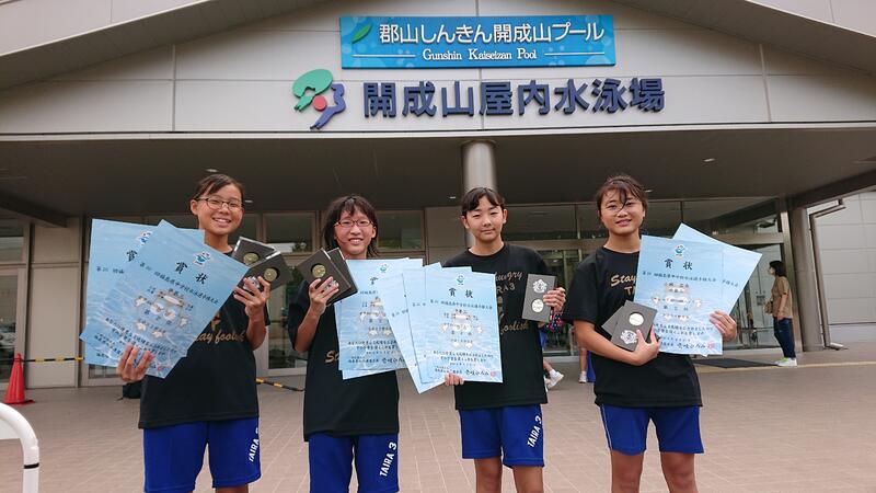 郡山市で行われている県中学校水泳選手権大会。男子に引き続き女子もフリーリレーが4位、メドレーリレーが2位と、リレー2種目で入賞を果たしました。