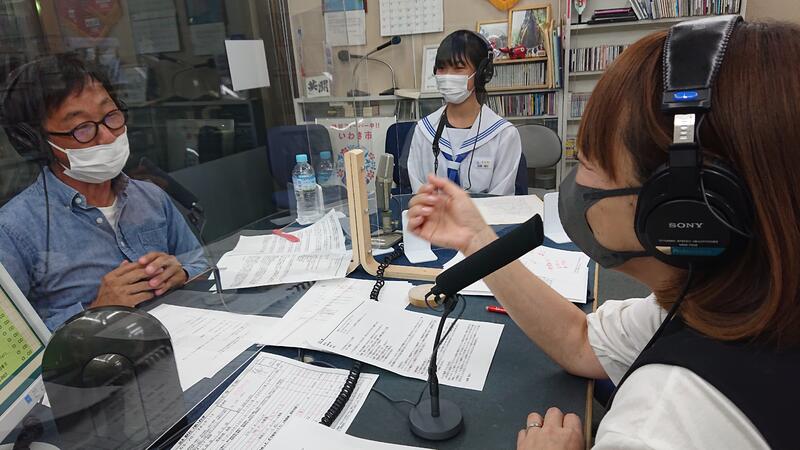 8月30日(火)にFMいわきさんの人気番組「とびベティのヨーソローアタック!」に出演させていただいた、キャリア教育推進委員会の3年生2名。 打ち合わせの時の緊張した表情が嘘のように、マイクの前では実に堂々とした態度と姿勢で、NHK杯全国中学校放送コンテストに参加しての感想を人気パーソナリティの飛田さんとベティさんに話してくれました。