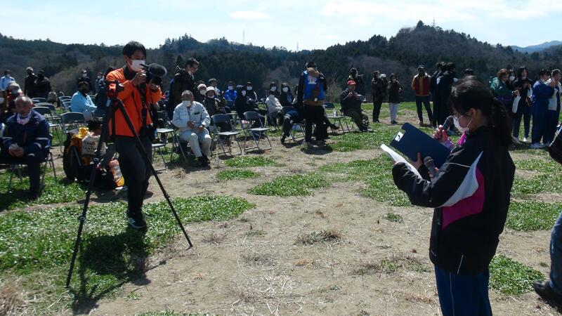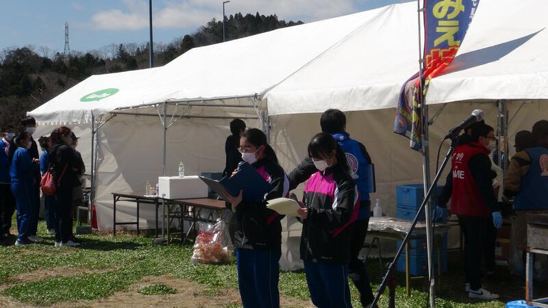 「国道6号線を桜の花でいっぱいにしたい」…津波で亡くなった生徒の想いをかたちにしようと活動に取り組んでいる西本由美子さん。福島の復興を象徴するハンサムウーマンとして、昨年度Jヴィレッジでスタートした聖火ランナーもお務めになりましたが、実は平三中は5年間にわたって様々な活動でご一緒させていただいています。いわき駅前に富岡町の桜を蘇らせようという「いわき光のさくらまつり」点灯式や、Jヴィレッジでの桜の植樹、そして本校での講演会…と、今までの協働作業は多岐にわたります。そして昨年度スタートした「浜街道さくらウォーク」でも開閉会式の進行などのお手伝いをしていて、今回も新3年生の4名が進行を担当しました。