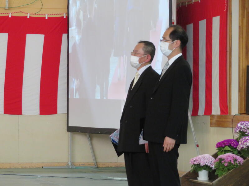 着任式の様子です。今日の着任式では11名の先生が紹介されました。