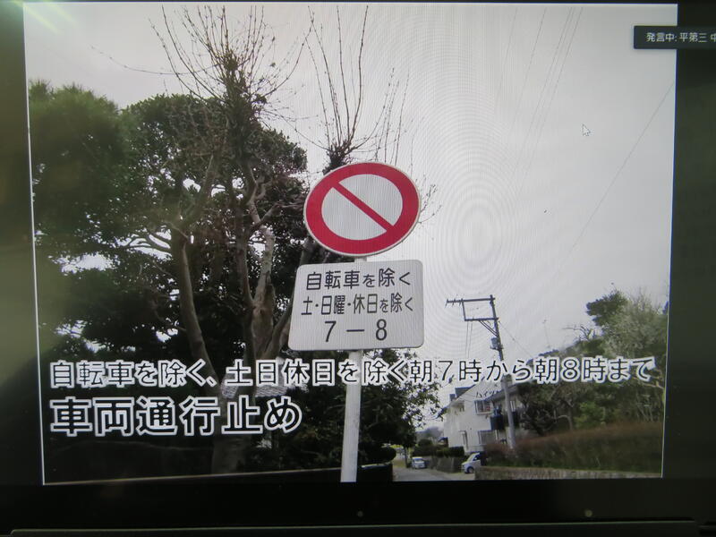 担当の先生が配信した写真などを見ながら、通学路の危険個所や道路標識等について確認しました。