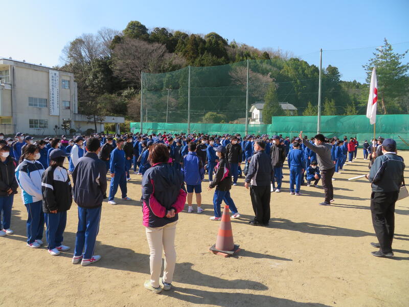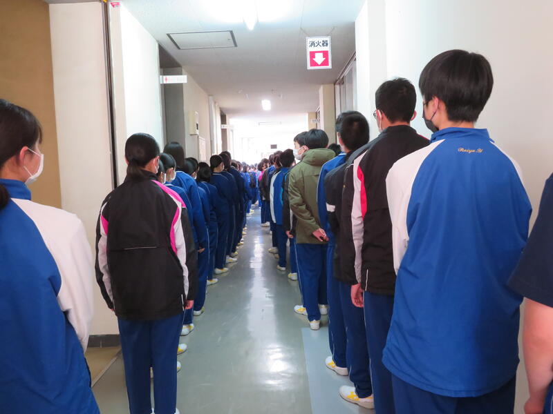 校地内の土砂災害が発生した状況を想定した南校舎から北校舎への避難する訓練と、地震から火災が発生した状況を想定した校庭への避難訓練を行いました。