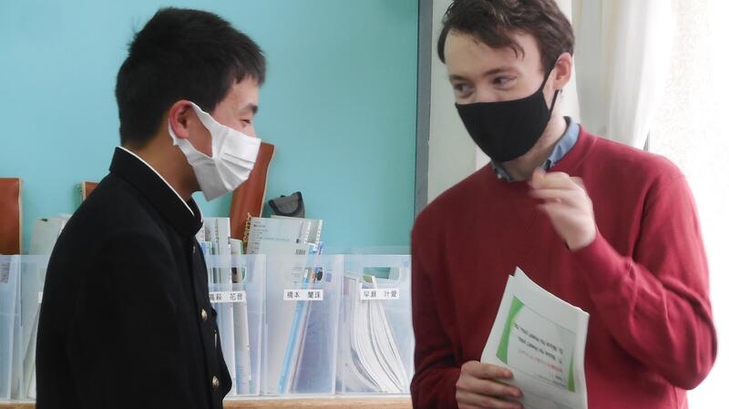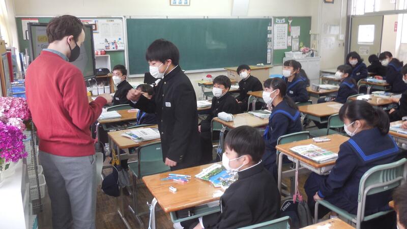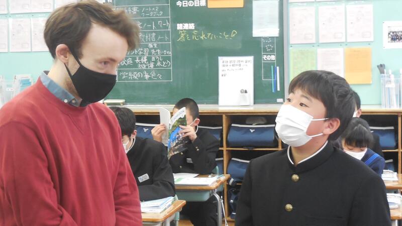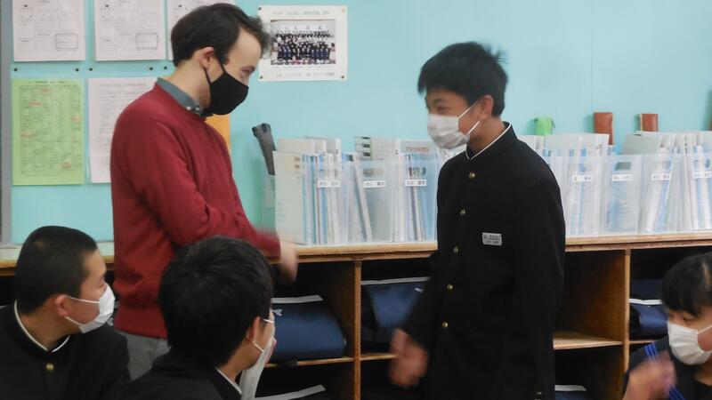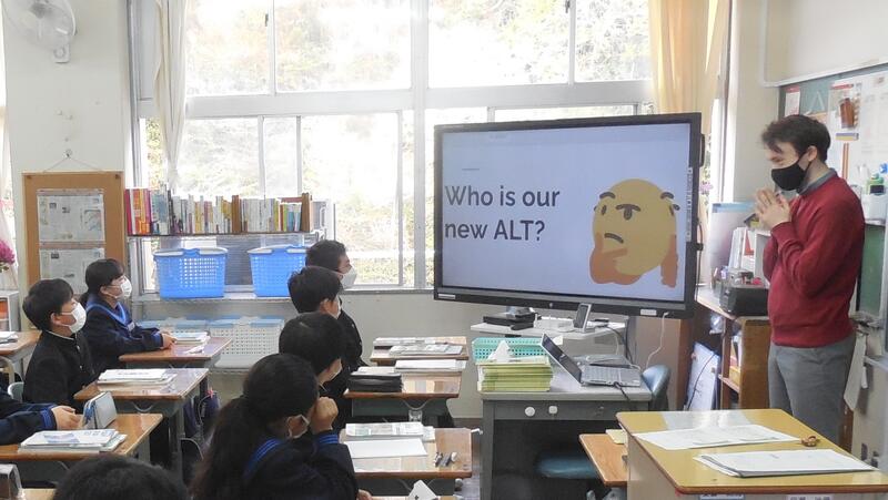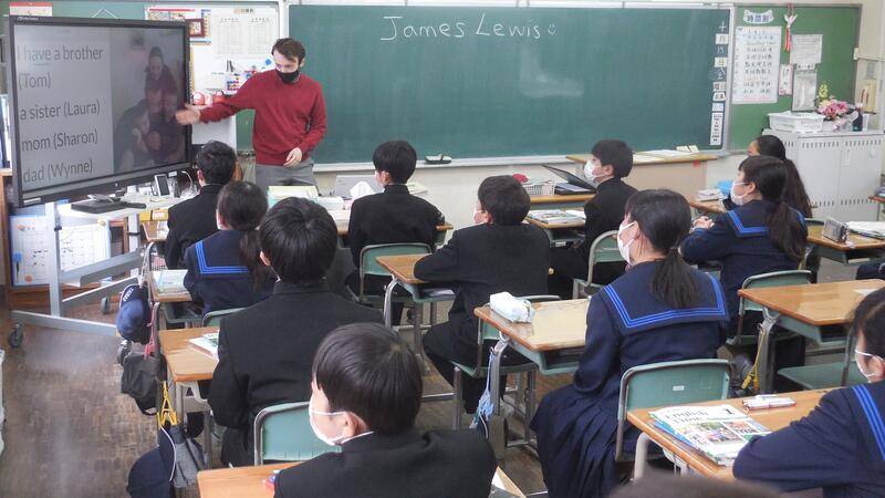 昨年11月に来日していわき市内の中学校で英語の授業を行っているジェイムス先生。今年度初となる訪問で、さっそく1年生のクラスで授業を行いました。