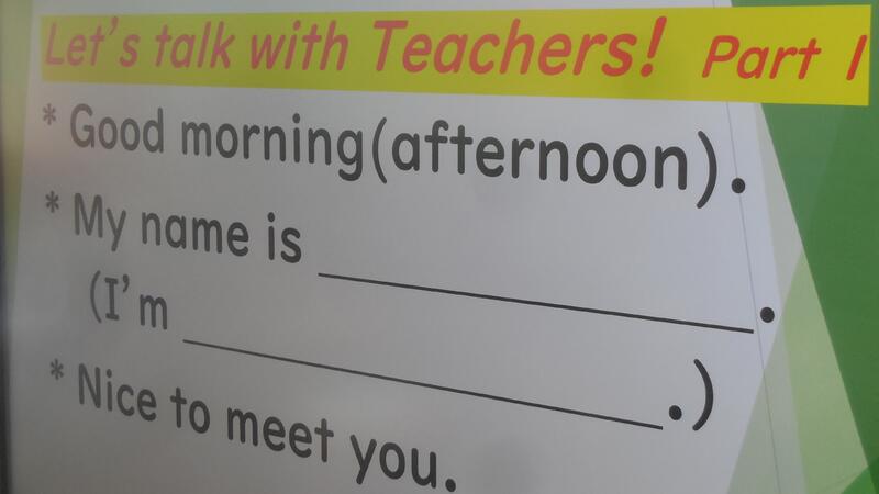 実は時間割授業がスタートしたばかりで、この日はまだ2回目の英語の授業。そこで初対面の時に使う会話やあいさつを実際に行いました。もちろん会話の基本は1対1。表情豊かにアイコンタクトをとりながら会話を楽しみました。
