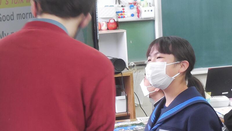 後半はクイズをまじえたジェイムス先生の自己紹介を聞き取りました。これから英語の授業でいっぱい勉強して、次回の訪問時にはもっともっとたくさんお話ができるといいですね。
