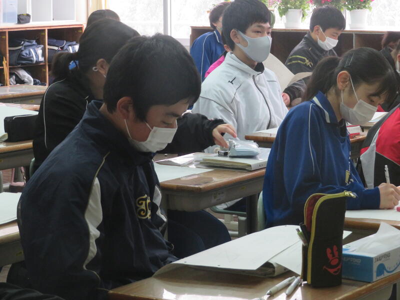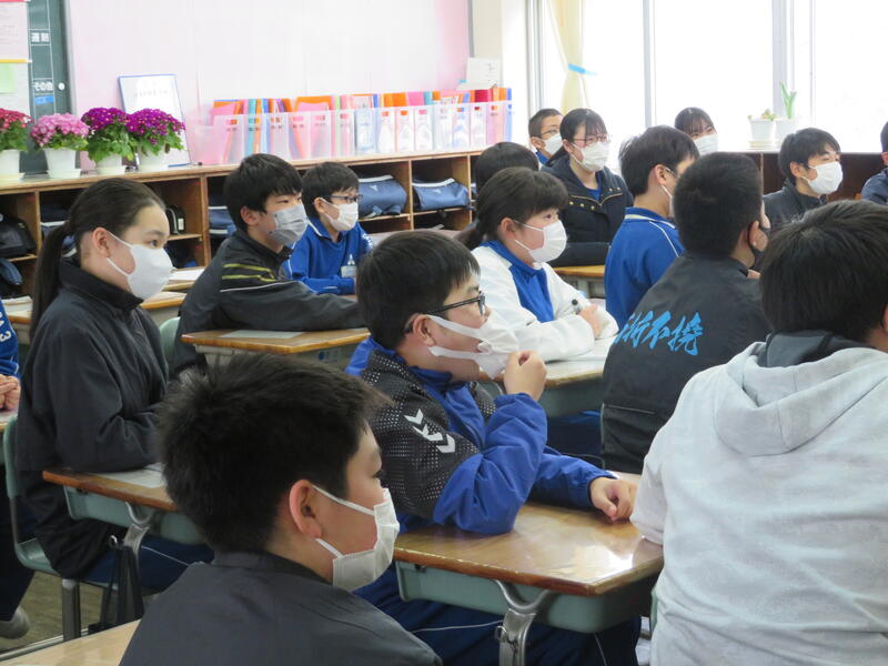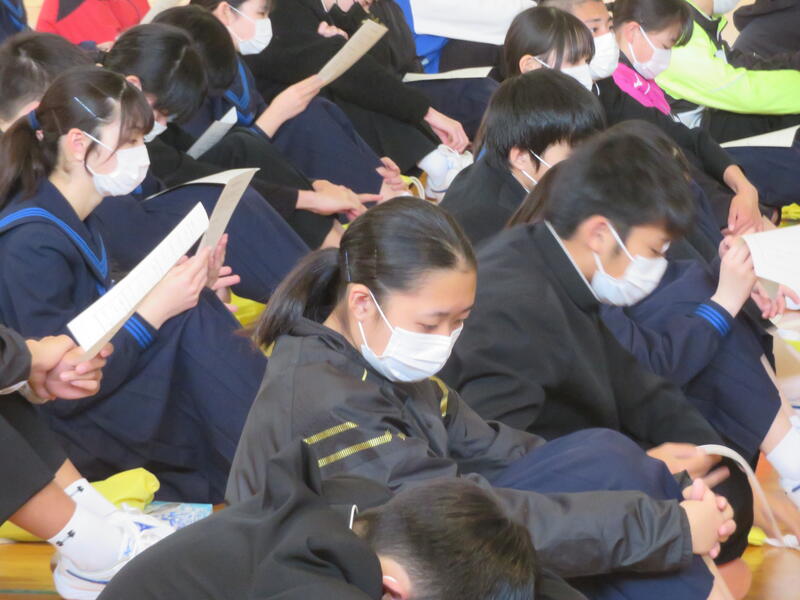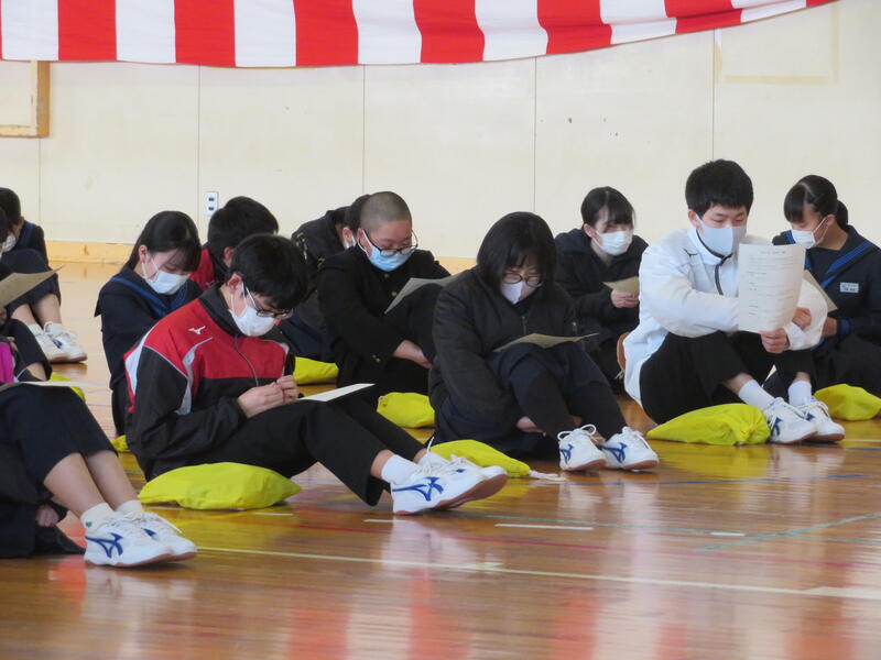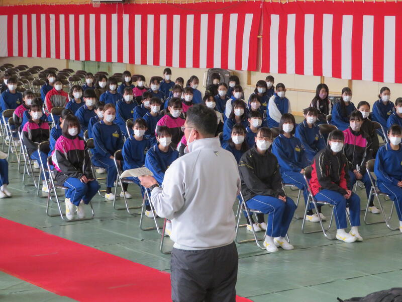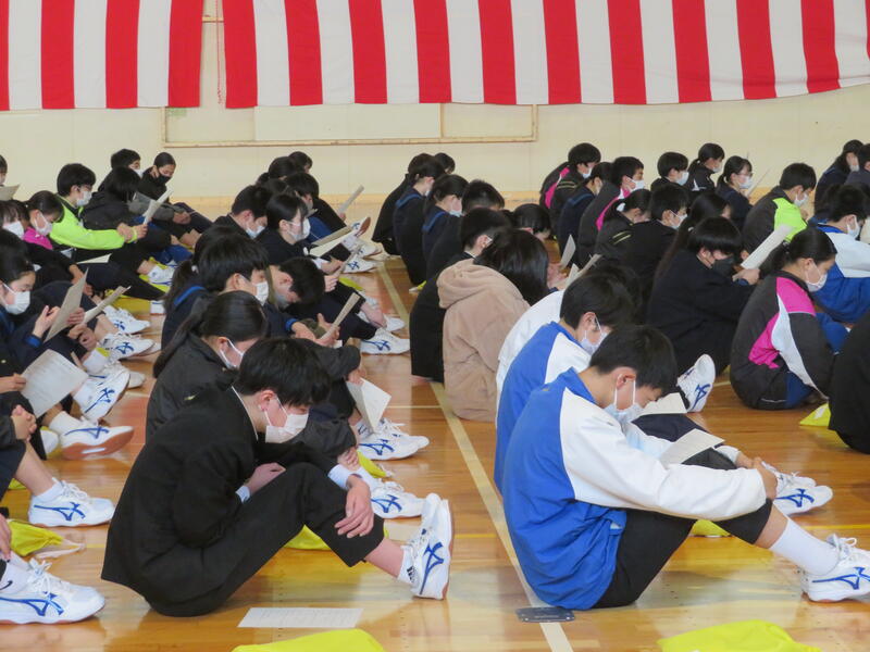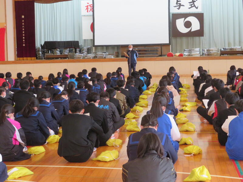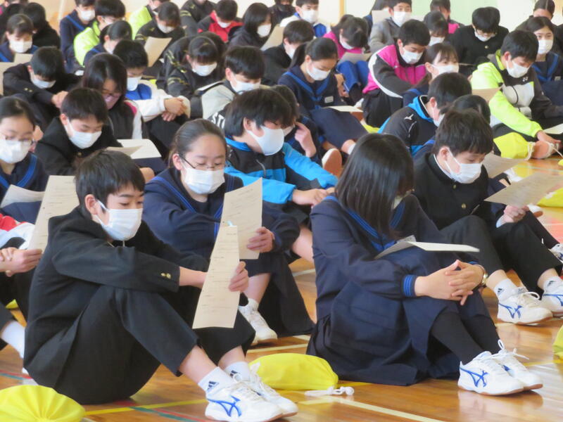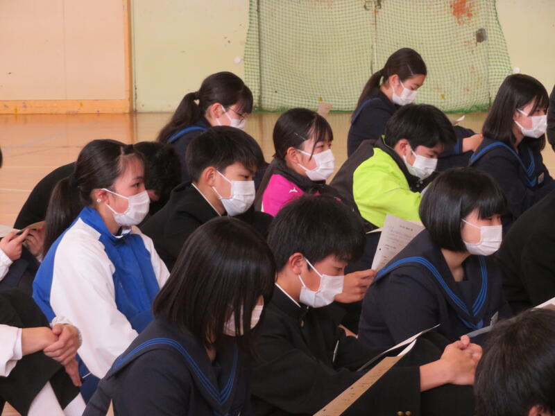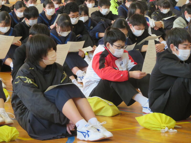 午後には、1年生と2年生が時間をずらして、今年度最後の学年集会を行いました。1年間の振り返りや学年末休業の過ごし方などについて確認しました。