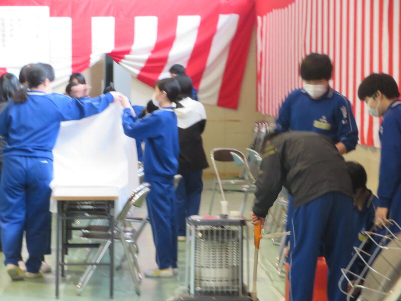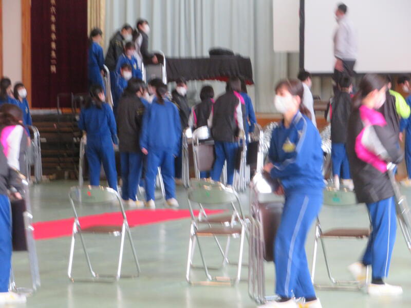 2年生は朝から、先週行われた卒業式の会場撤去の作業です。それぞれが分担された作業をテキパキとこなし、短時間で終了することができました。ありがとうございました。