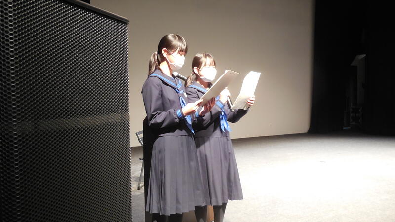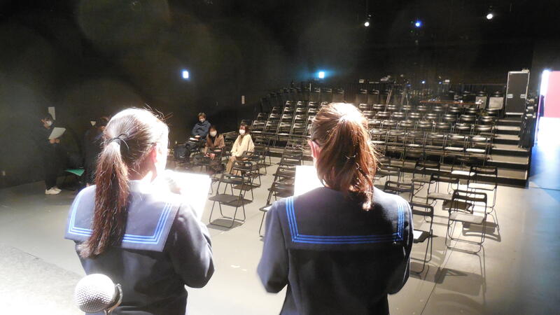 午前中に会場入りした生徒たちは、スタッフさんとの打合せの後さっそくリハーサルを行いました。校外で一般のお客様を前に司会・進行を務めるのはたいへん光栄ですが、プレッシャーも半端ありません。さらに当日になって内容が変更になったり追加される文章もあります。臨機応変に柔軟に対応しなければならないのです。