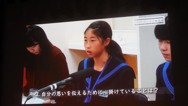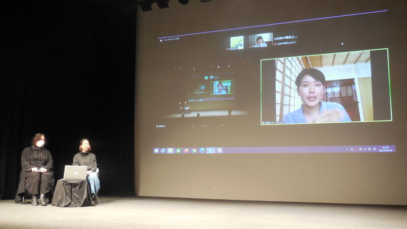 そしてお待ちかねの映画上映です。今回はPFF2021の入賞作品が上映されましたが、上映の前後には監督たちのトークも繰り広げました。グランプリ『ばちらぬん』を監督した東盛あいか監督、準グランプリ『グッバイ!』を監督した中塚風花監督、そして審査員特別賞を受賞した『豚とふたりのコインランドリー』を監督した蘇 鈺淳監督は、いずれも20代の若い才能あふれるみなさんです。映画の背景や込めた想いはもちろん、中学生へのメッセージも寄せてくださいました。監督たちからのメッセージを受けとめて、これからの進路実現の役に立ててほしいものですね。