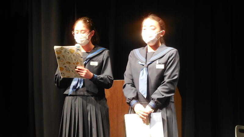 おひとりおひとりからの挨拶に続き、代表生徒が今までのエピソードを交えたお礼の言葉を贈りました。