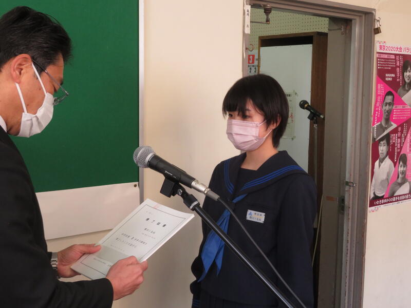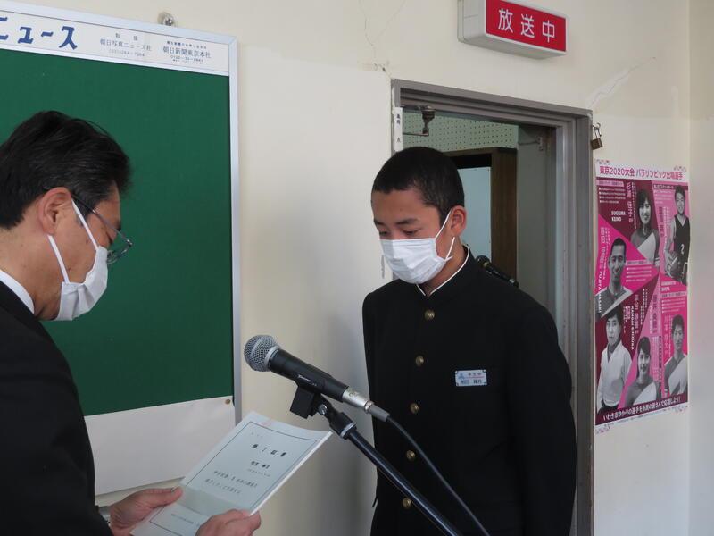 はじめに各学年の代表生徒に修了証書を授与しました。