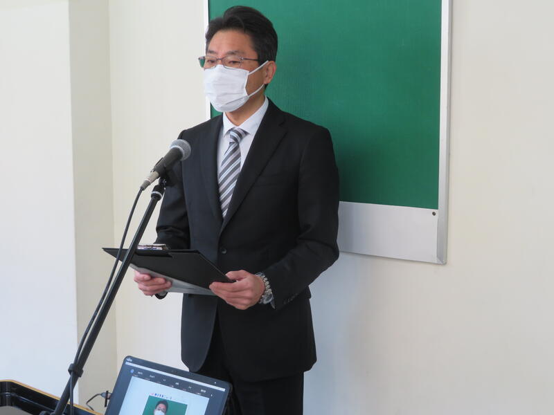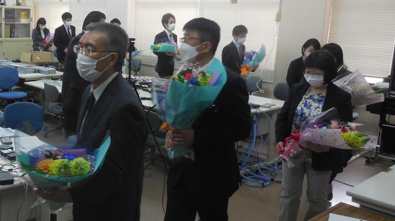 3月29日(火)の8時30分から、令和3年度末の異動による転退職者の離任式が行われました。