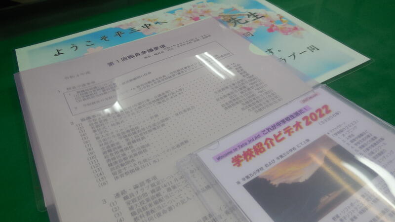 離任式で12名の先生方をお見送りして、寂しさが残る日々を過ごしていた平三中。でも、4月1日になって令和4年度がスタートして、いよいよ新しい先生方をお迎えする日となりました。