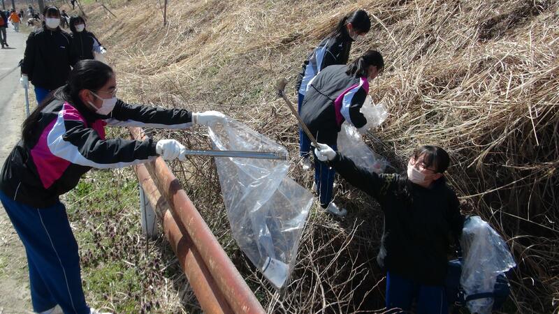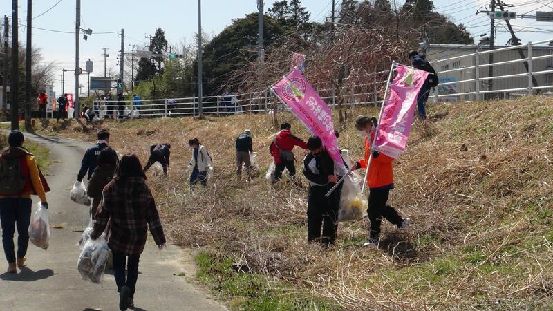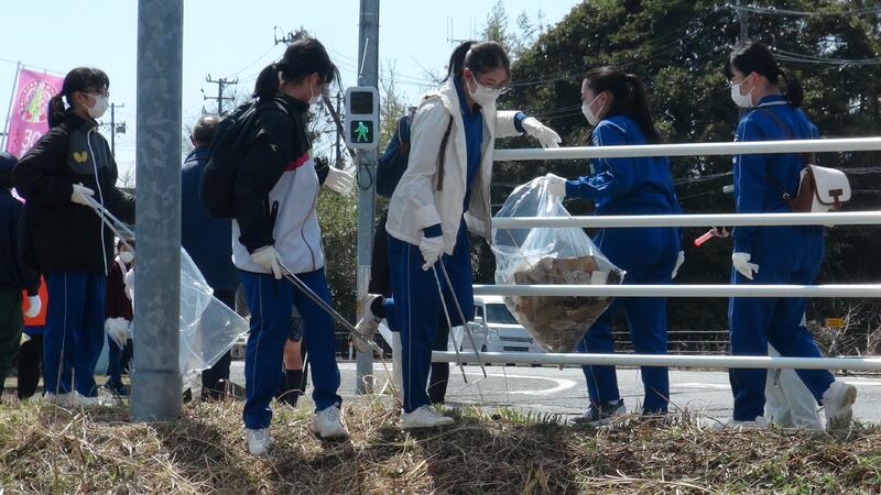 約6キロの道のりを歩いてさくら公園へと向かいます。国道6号線沿いに落ちているゴミを拾いながらのウォーキングですが、意欲あふれる生徒たちは浜街道をキレイにしようと、どんどん奥へと入り込んでいきます。あっという間にゴミ袋が一杯になってしまいました。