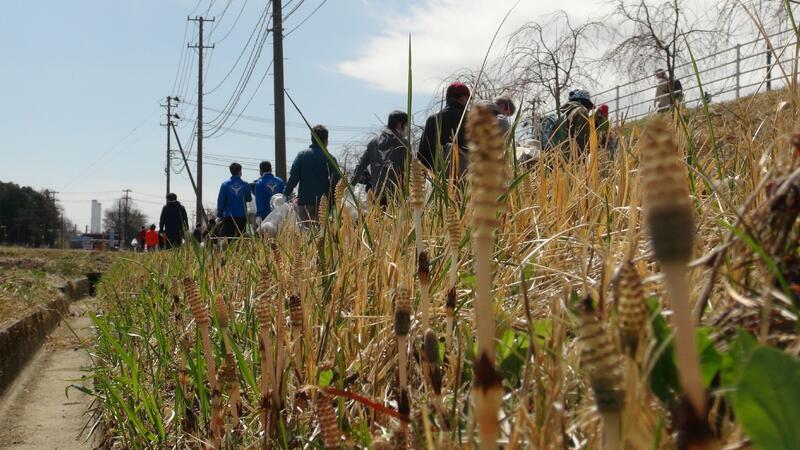 残念ながら先週の雪や冷え込みのせいで、国道沿いに植えられた桜はまだつぼみの状態。美しい花を見ることはできませんでしたが、土手には数多くのツクシが見られ春の訪れを感じさせます。桜の木に掲げられた30年後の故郷を思うプレートを見ながら、晴天に恵まれたウォーキングを満喫しました。