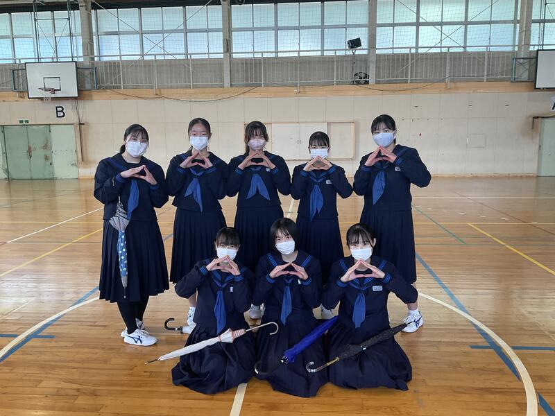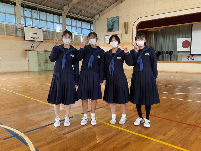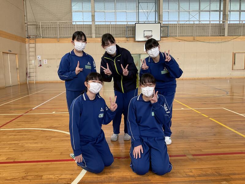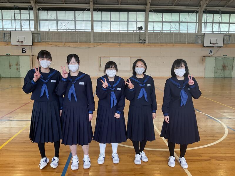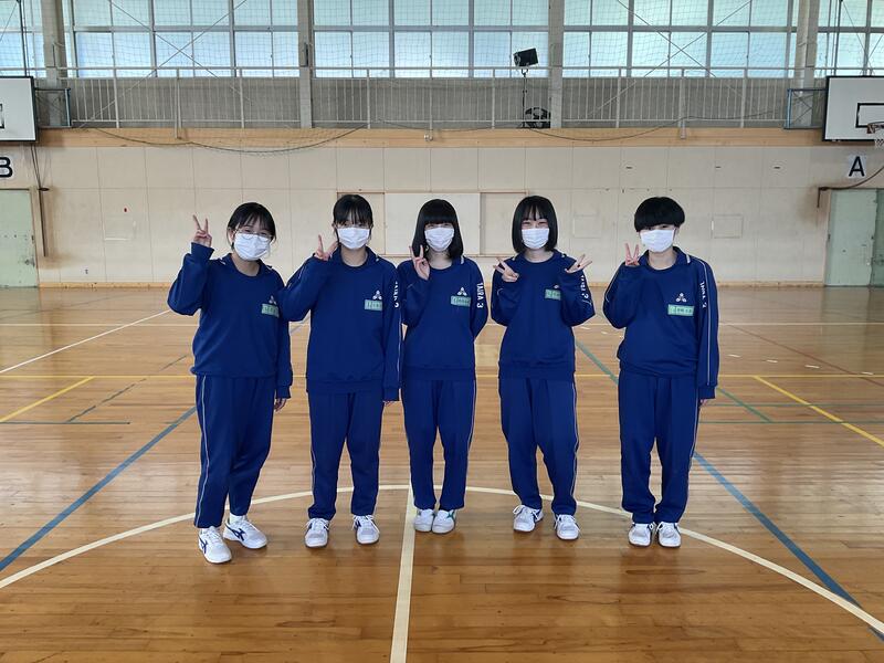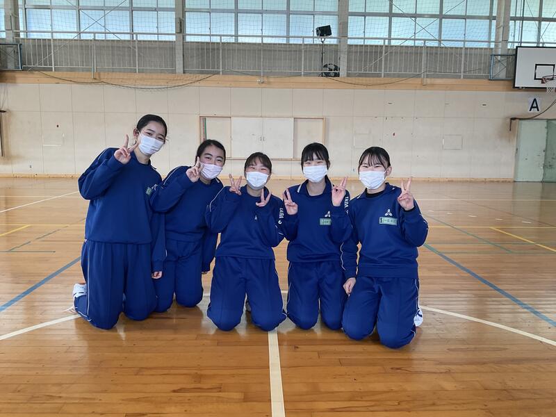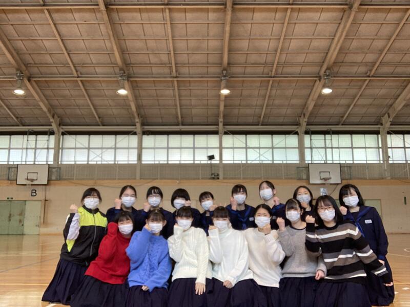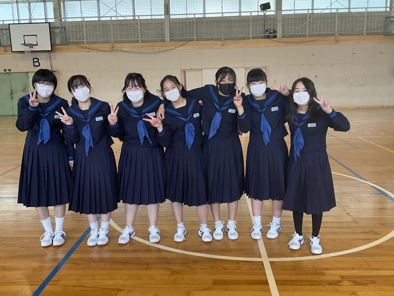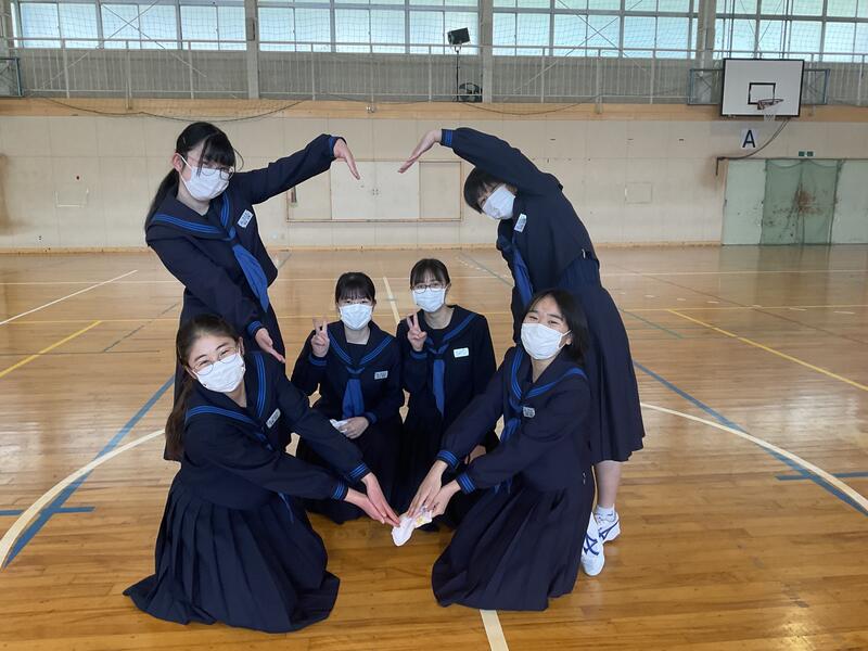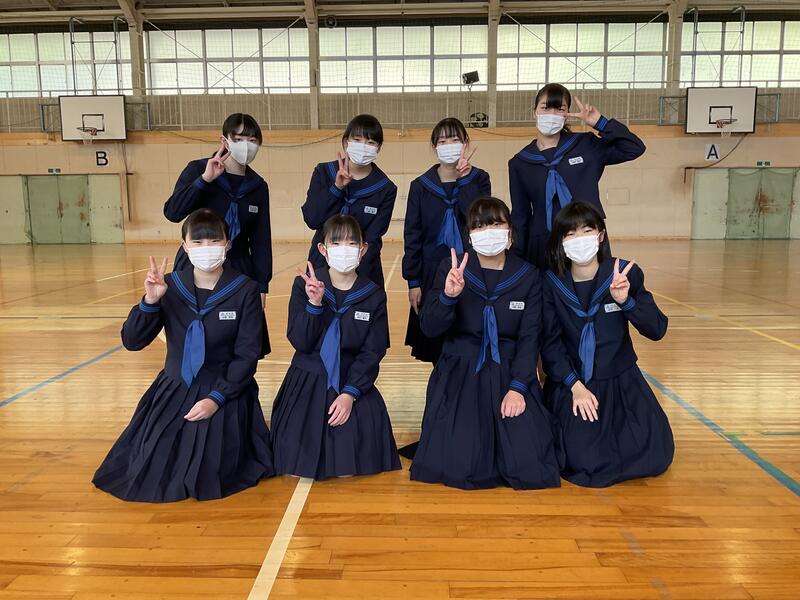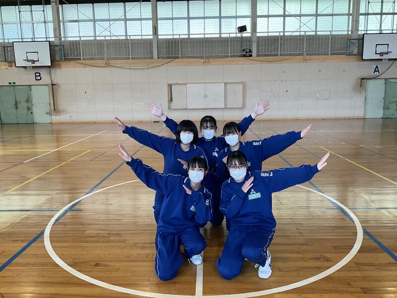 3年生女子は、ダンスの授業でグループごとの創作活動に取り組んできました。「群青」という曲の歌詞に込められた思いを読み解き、身体表現するという難しい課題です。曲の後半はすべてのグループが共通の振りつけで踊ります。
