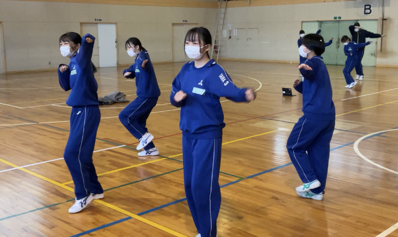 ダンスに用いた楽曲「群青」は、某テレビ局の「ダンスONEプロジェクト2021」という企画の課題曲です。子どもたちは、歌詞に込められた思いや曲の世界観を表現する活動を行ってきました。