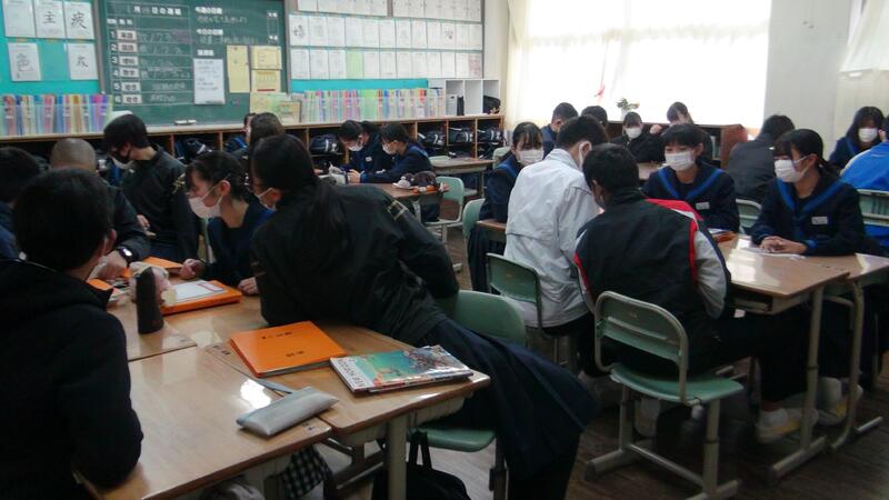 今日は今年度最後(3年生にとっては中学校生活最後)の生徒会常任委員会全体会を予定していましたが、学級・学年をまたいで多くの生徒が集まることになってしまうため、個人の反省と学級単位での反省会に替えて行いました。